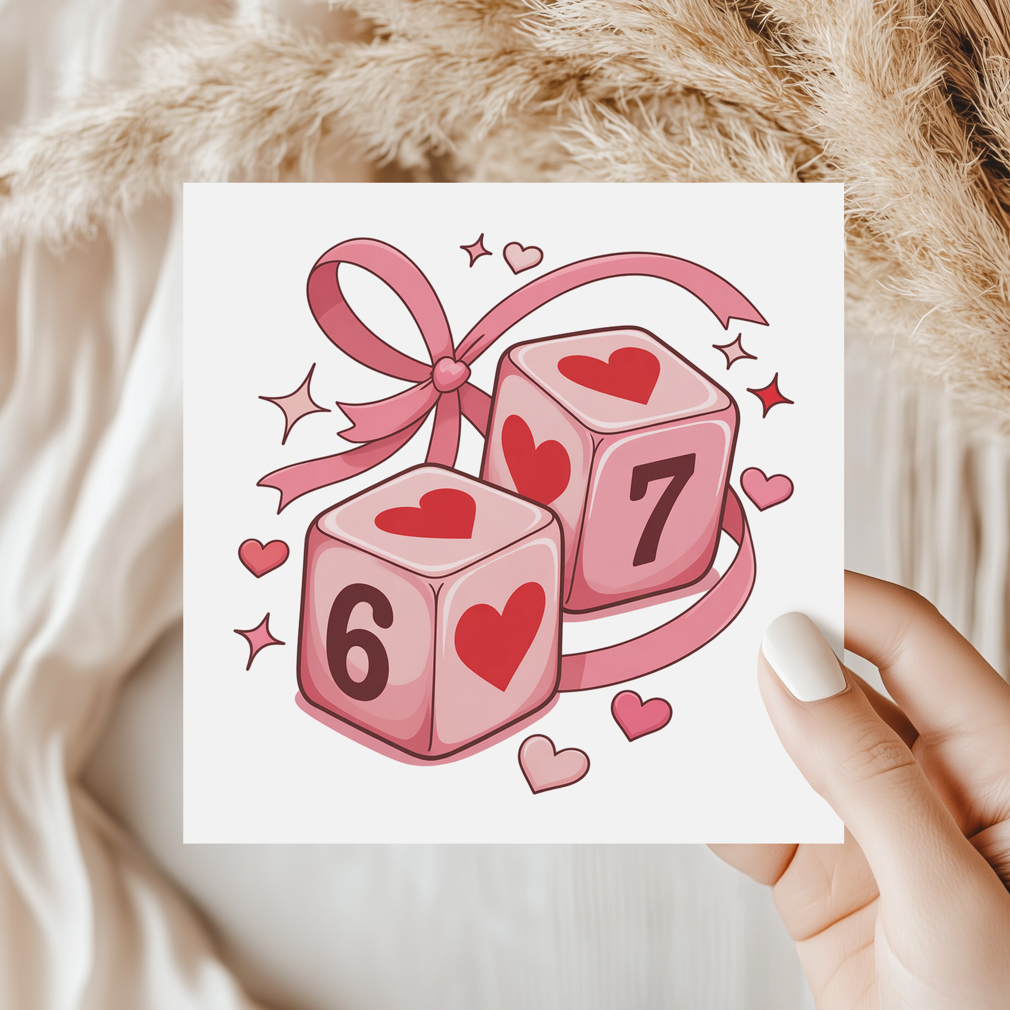 Lucky in Love Dice Valentine's Card - Cute 6 & 7 Heart Dice Card