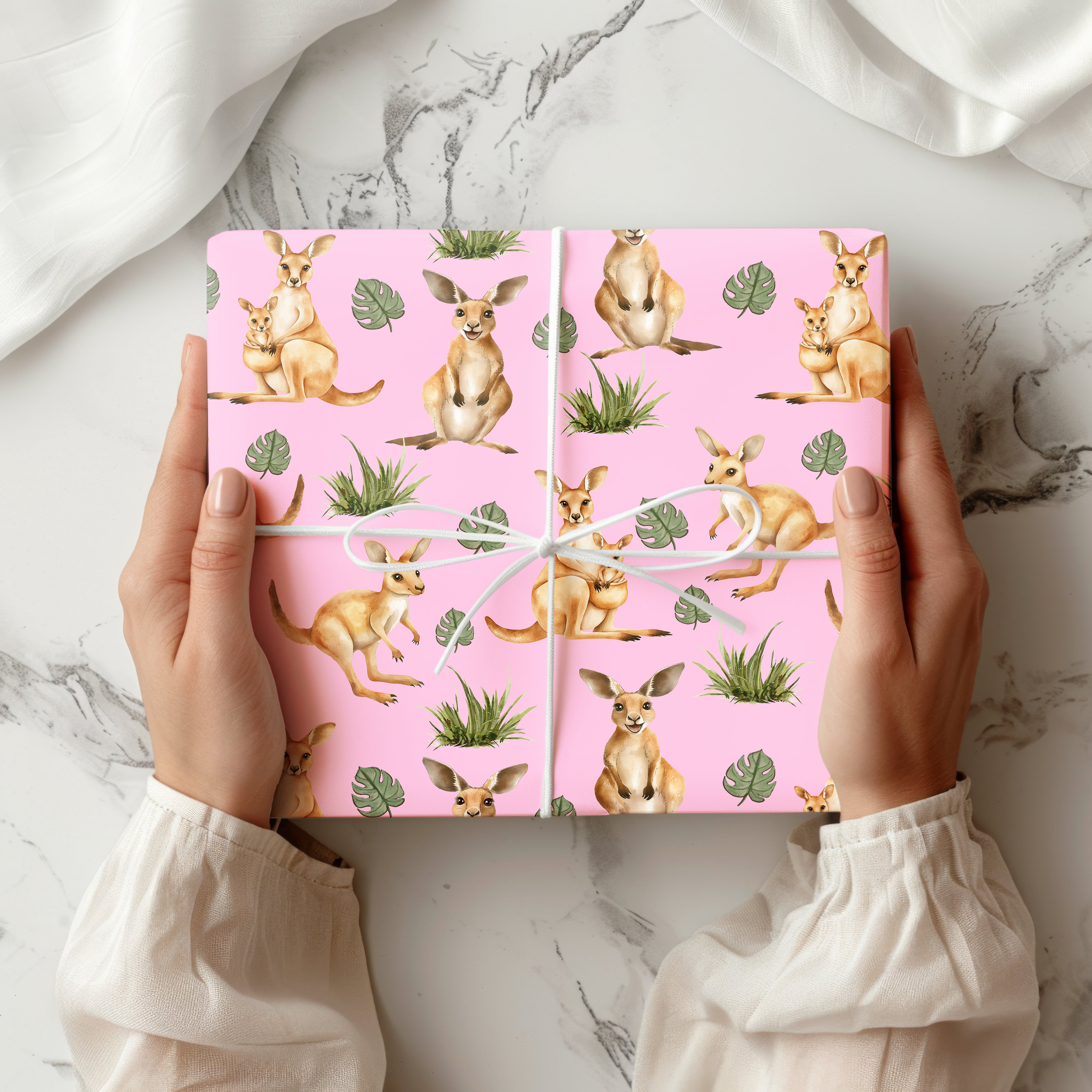 Watercolour Kangaroo Wrapping Paper Sheet – Australian Wildlife Gift Wrap with Joey for Animal Lovers