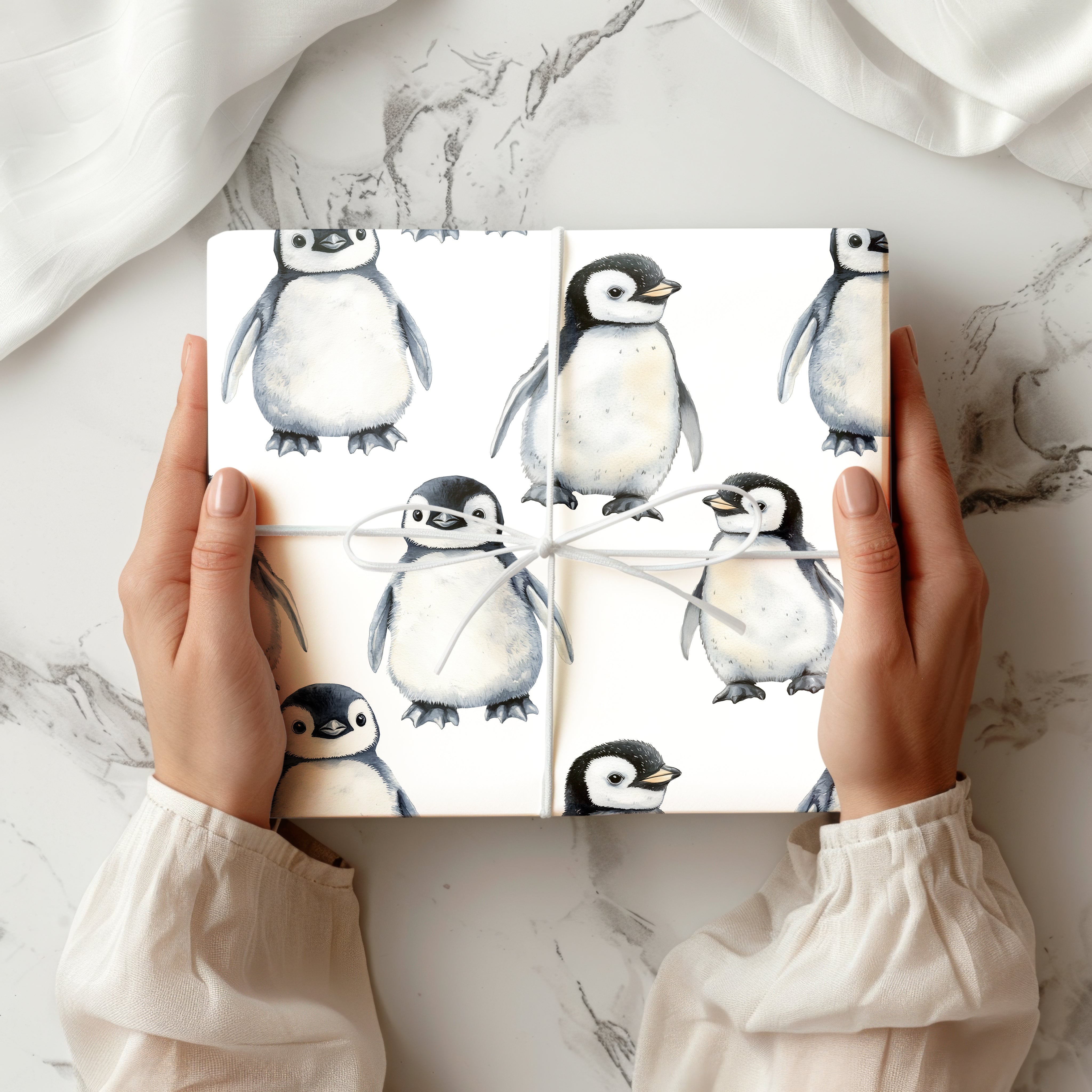 Cute Baby Penguin Wrapping Paper Sheet – Adorable Watercolour Gift Wrap for Christmas or Winter Birthdays