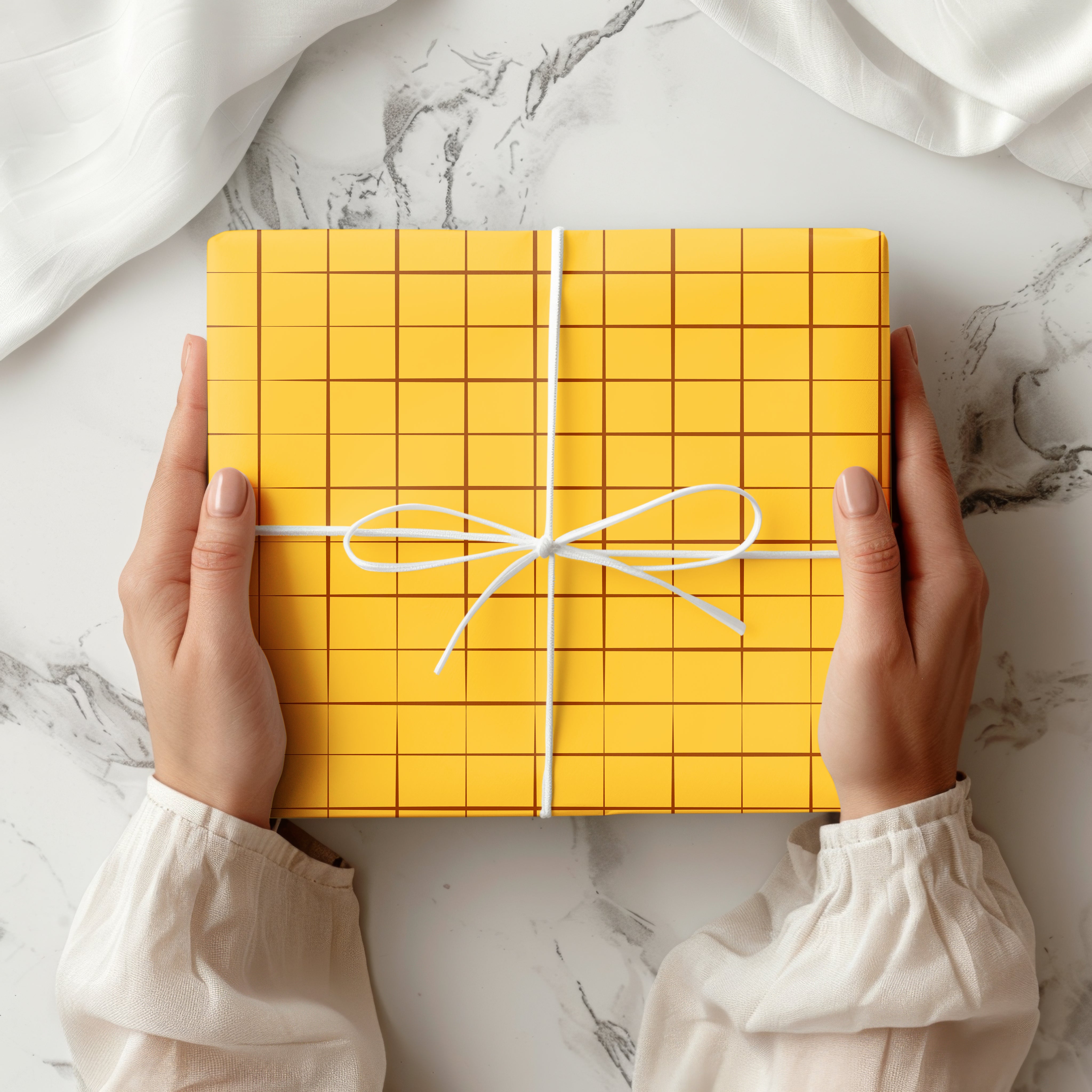 Yellow Grid Wrapping Paper Sheet – Modern Checkered Design Gift Wrap for Architects or Engineers, Bright Yellow